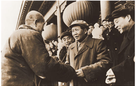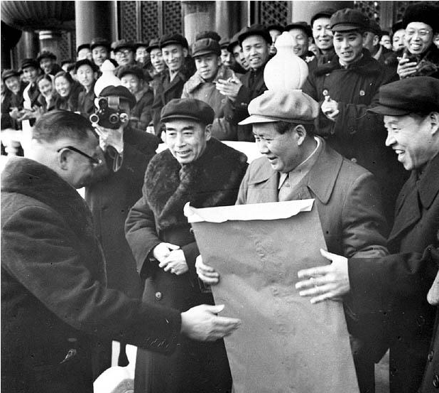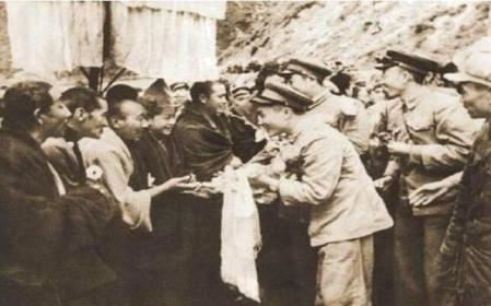 | 1951年进藏的人民解放军受到西藏群众欢迎 | 《中华人民共和国土地改革法》受到广大农民的热烈拥护 | 朝鲜战争的作战双方在板门店签署停战协定的场景 |