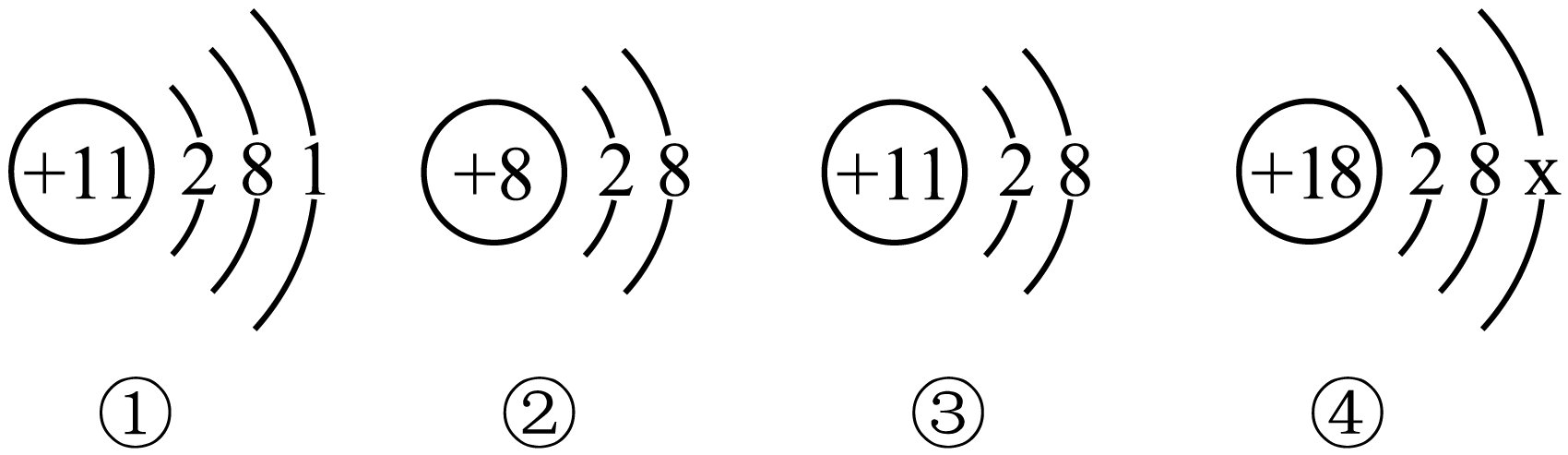 | C.②③可形成化合物NaO | D.④中x的值为8 |