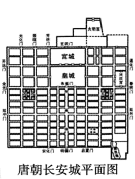 唐长安城中有东、西两市,是主要的商业区,这里商铺林立;城内所建100多个坊是居民区。据此结合下面平面图分析唐长安城的美学内涵是(
