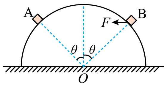 点为球心,A、B是两个相同的小物块(可视为质点),物块A静止在左侧面上,物块B在图示水平力