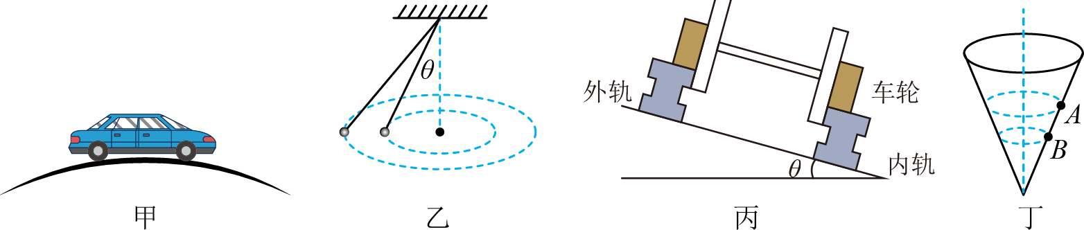 | D.图丁中同一小球在固定不动的光滑圆锥筒内不同位置做水平匀速圆周运动时角速度相同 |