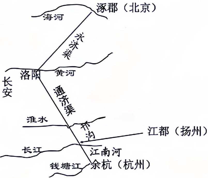 隋炀帝出征辽东,“兴百余万众,馈运(运送粮食)者倍之”。观察下图,若从大运河中心向涿郡(今北京)运粮运兵,需经过大运河的(