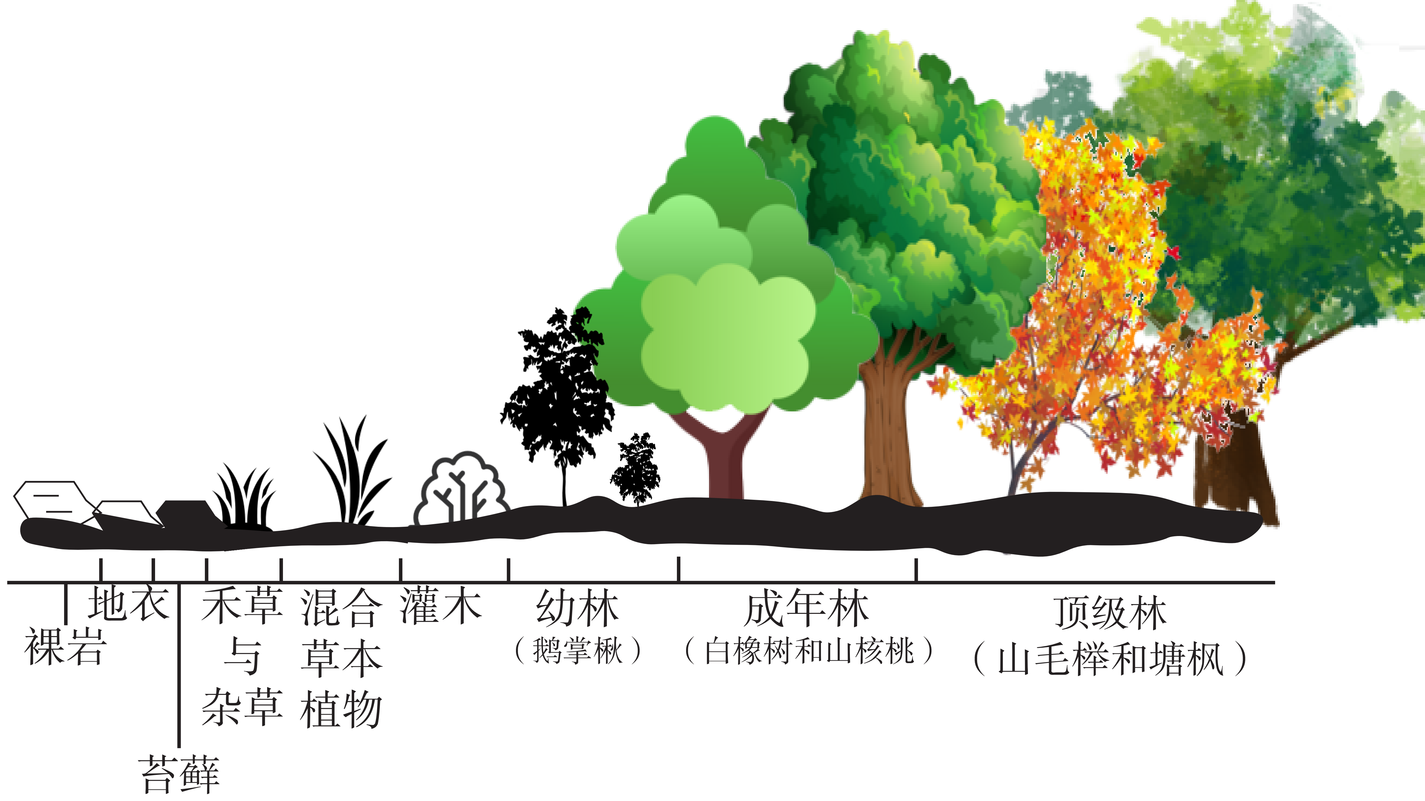 植物群落在一个特定区域演替的最终阶段是成为顶级群落。下图为基地区理想化的植物演替。其中,山毛榉树形高大,枝条开展,树叶深绿色,秋天变红褐色,但在气候适宜的地区经冬不凋。据此完成下面小题。