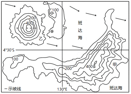 下图为班达群岛等高线地形图,据此完成下面小题。