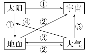 2023年12月13日至15日,山东省德州市出现降温、降水天气。农业专家表示,这次降水对冬小麦生长较为有利,但对部分旺长的麦田来说,要注意防止冻害发生。如图为大气受热过程示意图。据此完成以下各题。