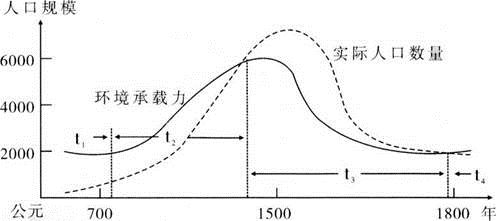 | B.t2时期,农业生产力的发展使环境承载力提高 |