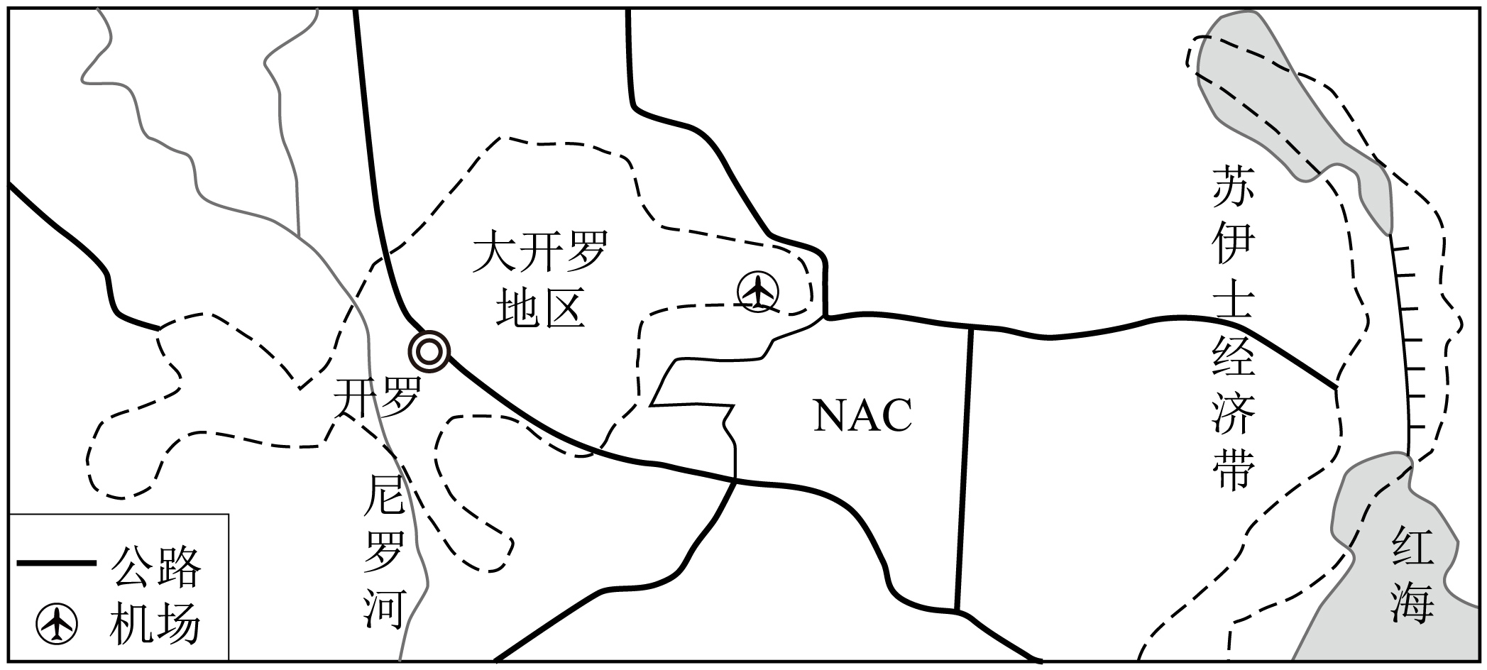 埃及新首都(NAC)自建成后,首批居民陆续涌入。新首都规划面积广阔,城市布局呈组团式发展。其内部有大片的绿地与公园穿插在各功能区之间,还有专门规划的商业区、住宅区和行政区。在建设过程中,原本的乡村土地被合理利用,部分转变为城市建设用地。新首都还规划了完善的交通网络,旨在打造高效便捷的城市环境。下图示意埃及新首都位置。据此完成下面小题。