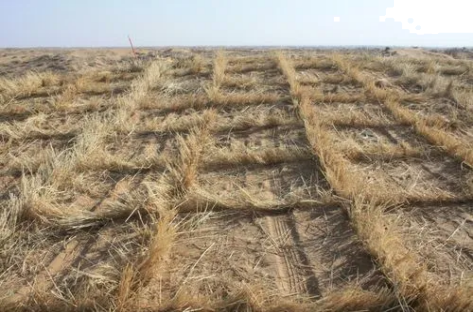塔克拉玛干沙漠是我国最大的流动沙漠,风沙危害严重。2024年11月28日塔克拉玛干沙漠绿色阻沙防护带补齐“缺口”,完成了锁边,全国最大的沙漠戴上了“绿围脖”。草方格沙障是用干燥的麦草、稻草、芦苇等材料在沙漠中扎成方格形状。下左图为塔克拉玛干沙漠绿色阻沙防护带示意图,下右图为麦草方格沙障示意图。据此完成下面小题。