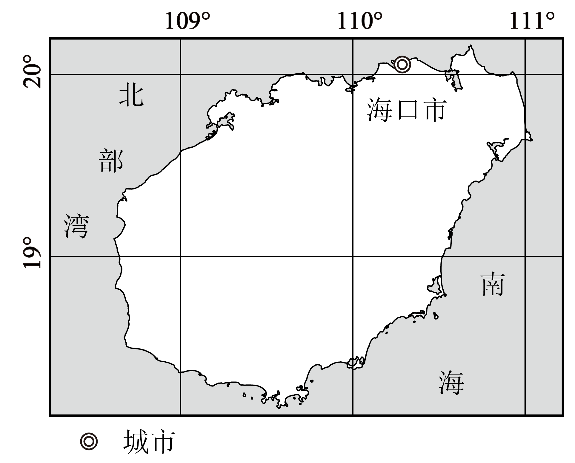 海口市某中学组织学生进行太阳运动观察实践活动,小明从正北面的窗户进行观测。十天内,他发现有两天的日出方位与同一棵大树方位重合。下图示意海口市地理位置。据此完成下面小题。