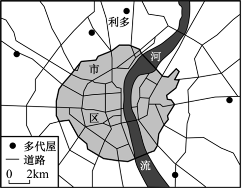 近年来德国“多代屋”养老发展迅速,其核心内容是构建无血缘关系的多代居民会面的居住场所。科隆市利多住宅型“多代屋”建于2009年,是科隆市目前规模最大的住宅型多代屋。下图示意科隆市住宅型“多代屋”分布。据此完成下面小题。