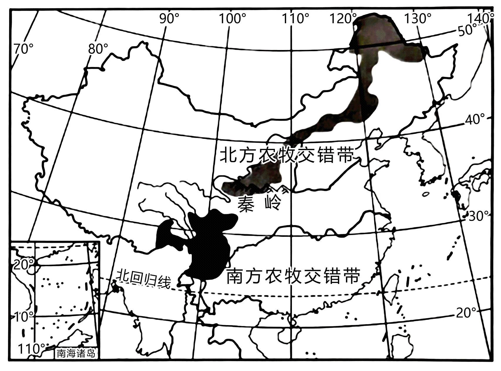 | C.藏—青藏高原—高寒荒漠广布 | D.琼—珠江三角洲—热带雨林 |