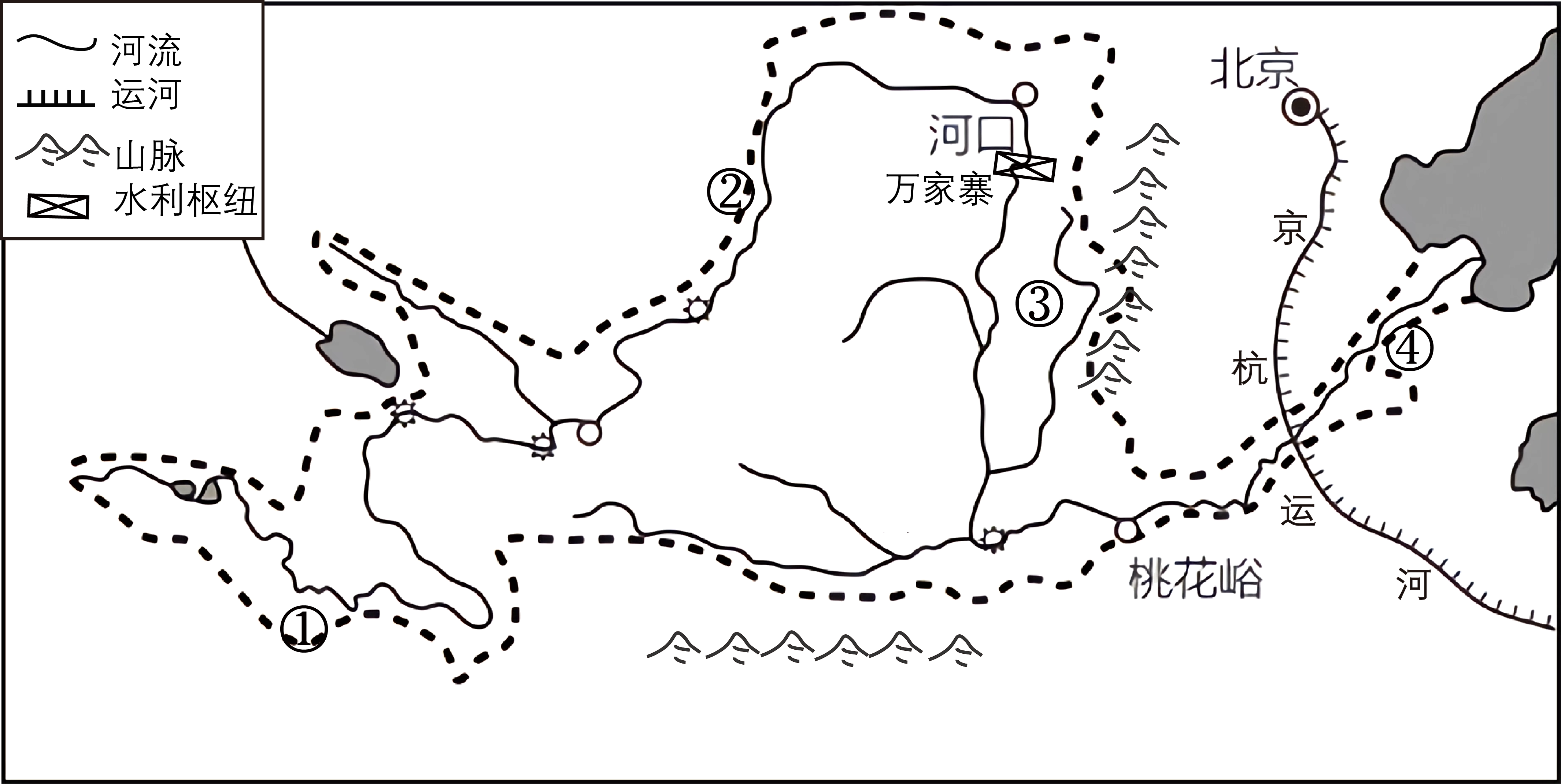2022年3月18日,黄河内蒙古封冻段全线开通,凌汛洪水安全进入万家寨水库,标志着黄河2021—2022年度凌汛期结束。下图为“黄河水系略图”。据此完成下面小题。