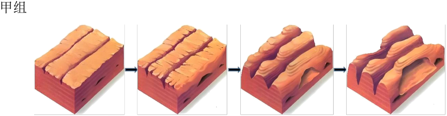 | A.陆地沉积—地壳抬升—岩层断裂—外力侵蚀 | B.陆地沉积—地壳抬升—外力侵蚀—岩层断裂 |