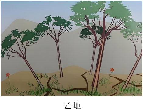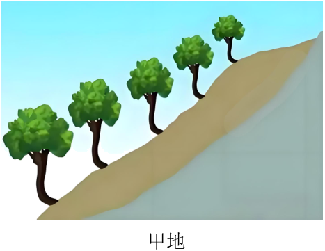 在一些山区,你可能会看到奇特的马刀树(甲地)与醉汉林(乙地)景象。它们并非普通的自然景观,而是山体滑坡等地质灾害留下的特殊痕迹。据图完成下面小题。