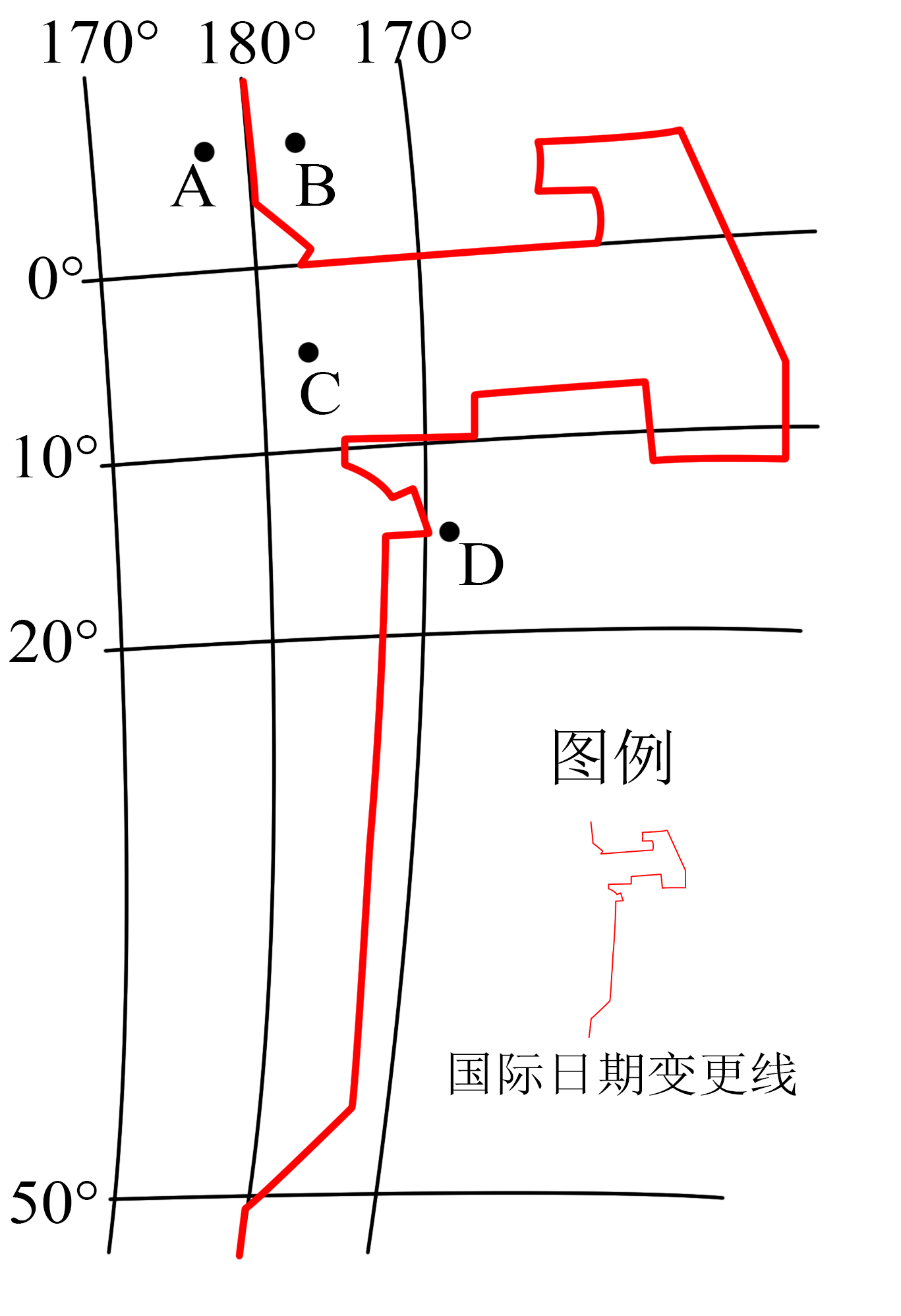| A.B与C处于同一日 | B.B与C处于同一季 | C.B与C同时刻日出 | D.B与C同方位日落 |