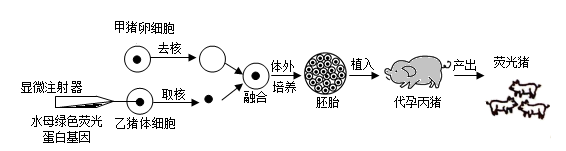 如图为我国培育出的首例绿色荧光蛋白转基因克隆猪,甲猪为黑色,乙猪为白色,下列相关说法错误的是(