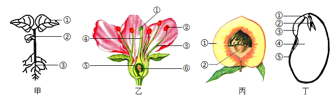 | B.图丙中的②种子是由图乙中的⑥发育而来的 |
