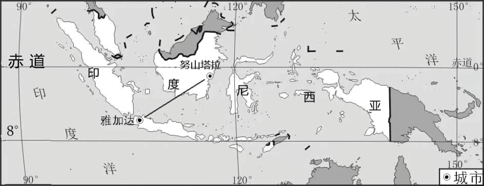 2024年11月19日,印度尼西亚通过一项法案,正式取消雅加达的首都地位,并将其设立为特区。新首都将迁往加里曼丹岛上的努山塔拉。阅读下图,完成下面小题。