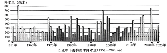 | A.在1954年,我国长江中下游发生强降水,其在梅雨季的降水量有800毫米左右。 |