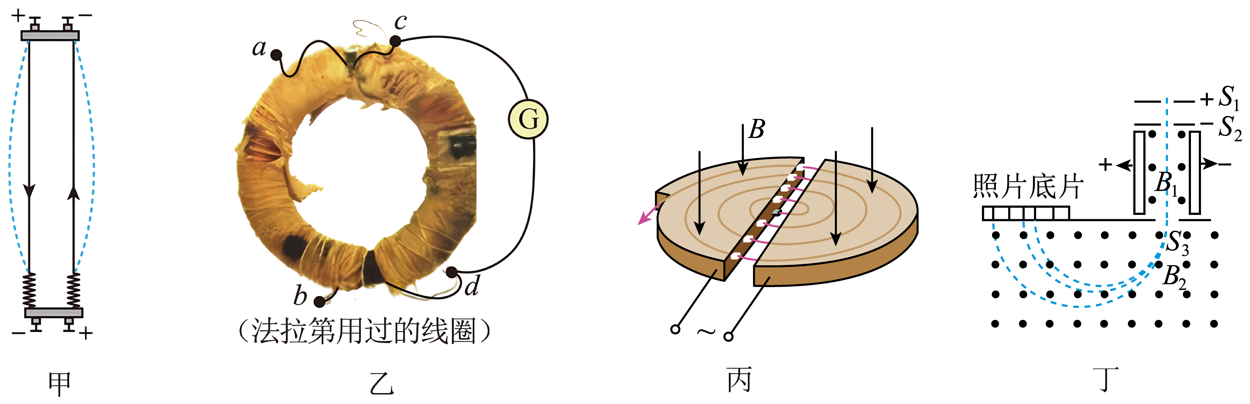| A.甲图中,两根通电方向相反的长直导线相互排斥,是通过电场实现的 |