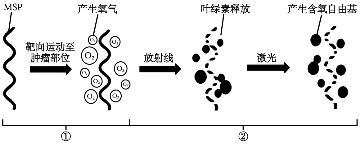 | C.过程①利用MSP叶绿体释放的O2改善肿瘤组织内部的缺氧环境 |