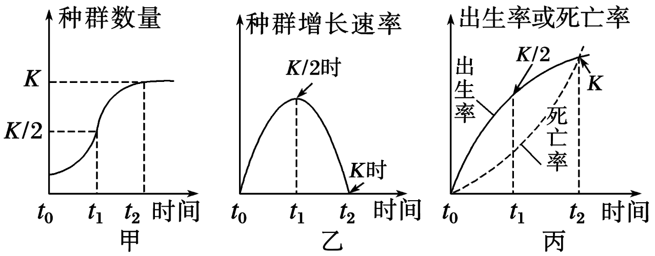 | D.t2时,种群数量达到K值,此时出生率等于死亡率,种群增长速率为0 |