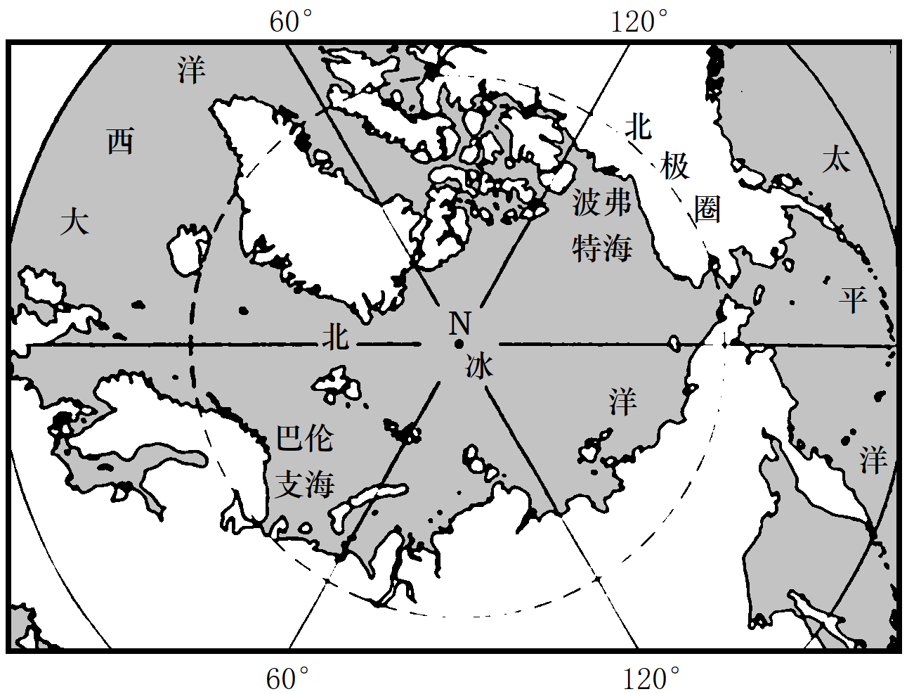 北极地区(下图)的海冰密集度(单位面积海洋中海冰的占比)主要受太阳辐射、大气环流、洋流和入海径流等因素的影响。北极上空的低云通过调节辐射和湍流热交换,对海冰的生消起重要作用。据此完成下面小题。