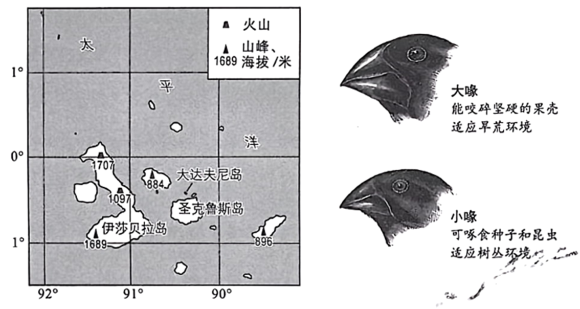 | C.地雀空间分布不均衡 | D.群岛距离大陆远 |