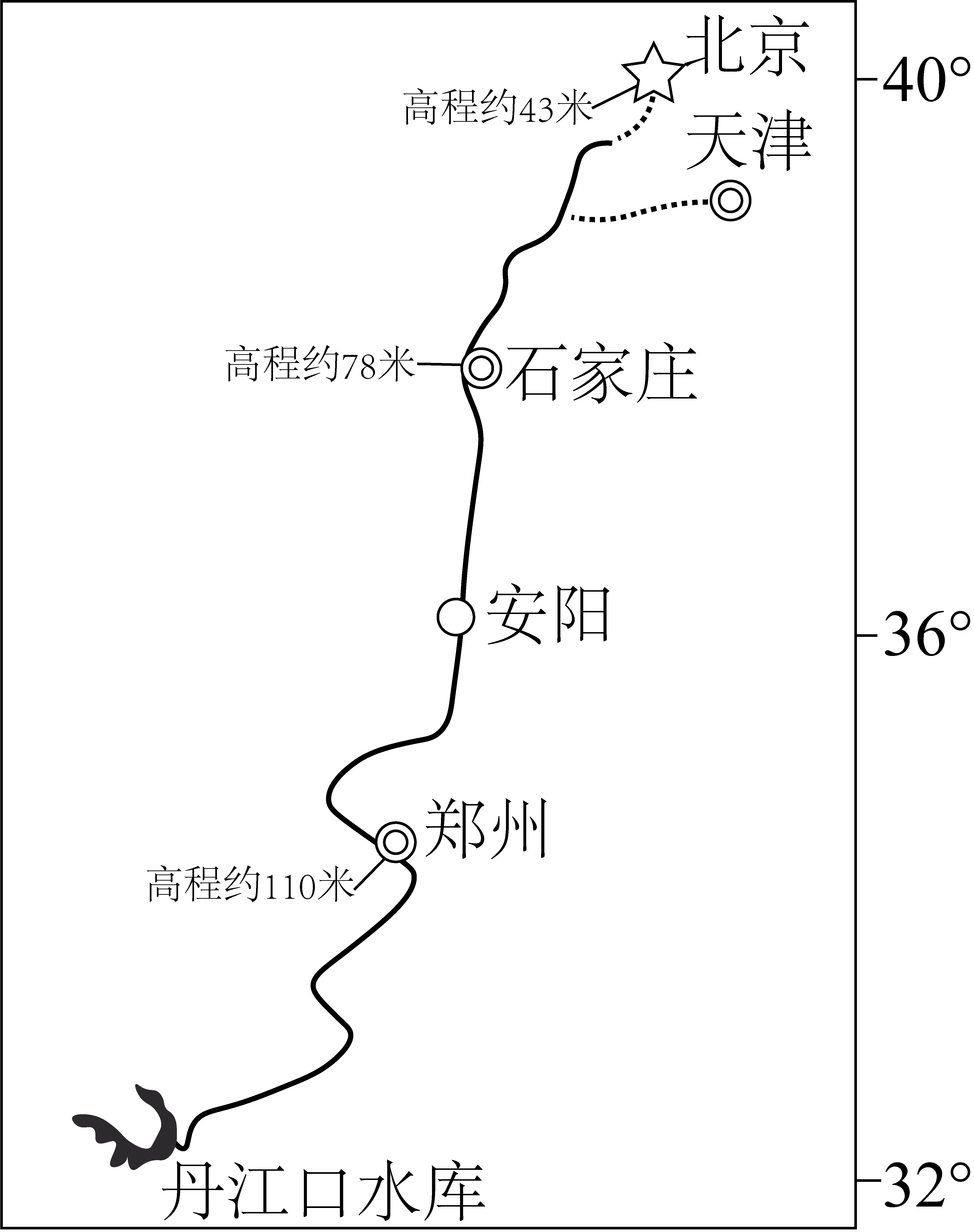 南水北调中线工程(下图)的受水区年均缺水量超60亿立方米。2005年,该工程起点丹江口水库大坝的坝顶由原来的162米加高至176.6米。2014年12月工程正式通水,至2024年6月已累计调水突破729亿立方米。当地管理部门会根据气温变化,调节安阳以北干渠的水位与流速,保障冬季顺利输水。据此完成下面小题。