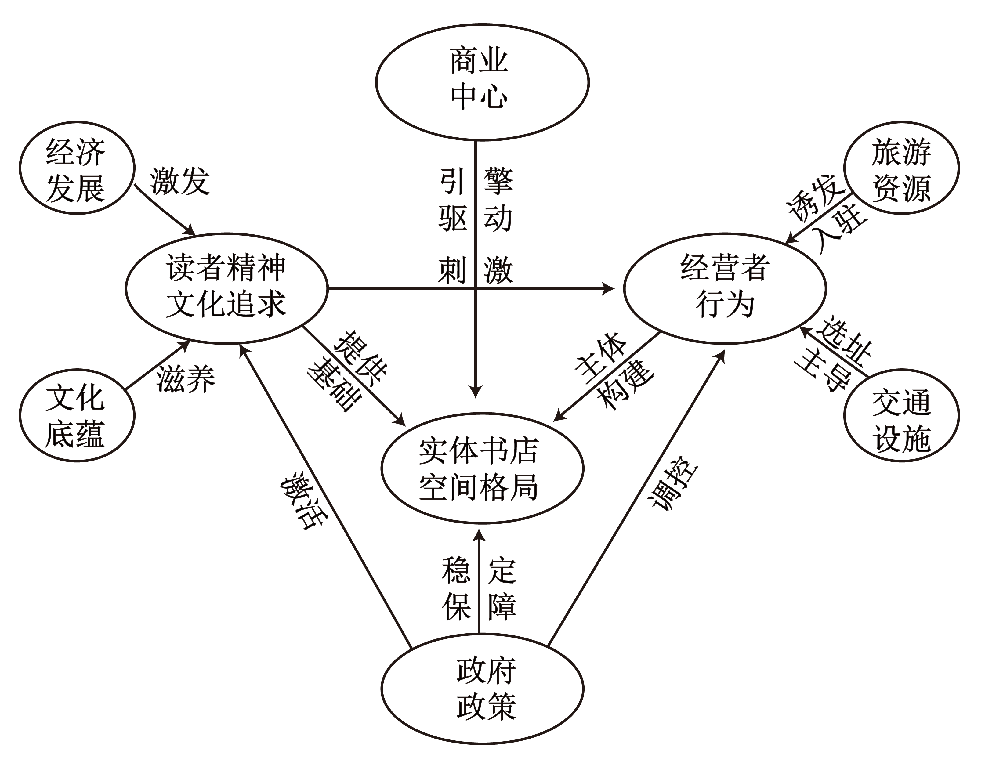 南京市人文旅游景点丰富,有“世界文学之都”之称。近年来南京市实体书店数量呈减少趋势、且销售的书籍以中小学教辅资料为主,书籍种类呈单一化趋势。下图示意南京市实体书店空间格局形成机制。据此完成下面小题。