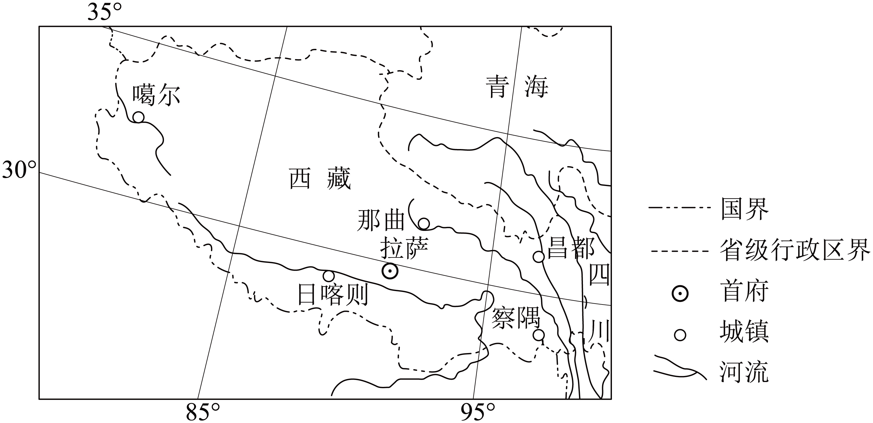 | A.噶尔 | B.那曲 | C.拉萨 | D.察隅 |