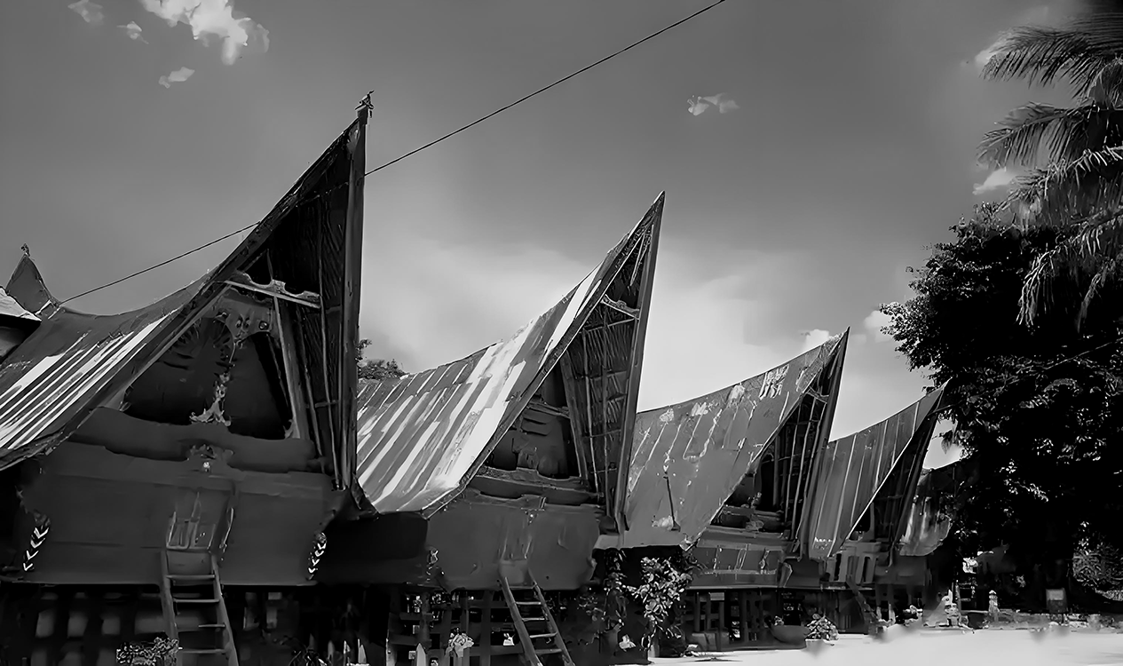苏门答腊岛多巴湖畔(3°N,98°E)为热带雨林气候,终年高温多雨。该地民居有3层,下层是硬木搭建的支架,作为家畜栏;中层是竹木拼接的生活区;上层有一个倒扣的船形屋顶,屋脊为下凹的马鞍形。屋顶用竹木搭建出骨架,上面覆盖棕榈叶等纤维编织而成的草席。下图为当地传统民居景观图。据此完成下面小题。