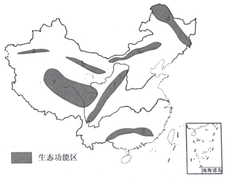 我国根据资源环境承载力、现有开发密度和发展潜力,统筹考虑未来经济布局、国土利用和城镇化格局,将全国划分为优化开发、重点开发、限制开发和禁止开发四类主体功能区以及216个生态功能区。结合我国“十二五”规划的生态功能区(以保护林草、湿地和生物多样性等为主的区域)分布图,完成下面小题。