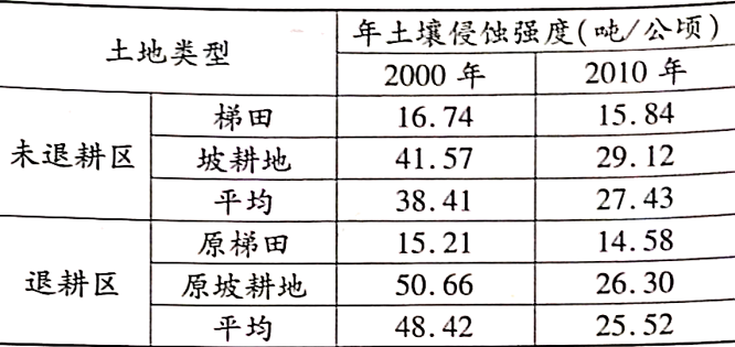 | C.退耕区坡度较大 | D.未退耕区降水多 |