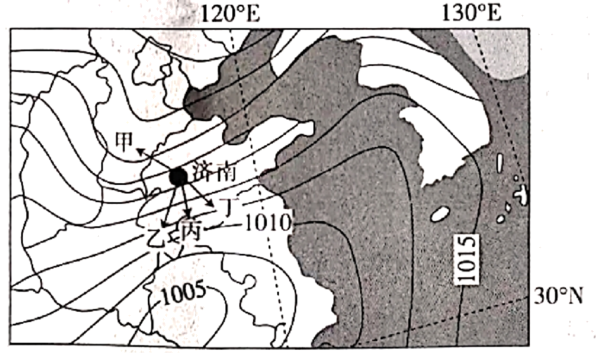 2025年3月2日,山东济南突发寒潮,引发暴雪、大风天气。暴雪过后,某志愿者发现道路旁树根周围覆盖大量碎石。下图示意该次暴雪时济南及周边地区的天气形势。完成下面小题。