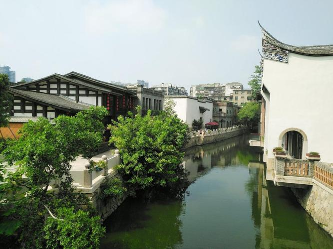 福州上下杭地区位于城区中部,在古代是一条集商贸、港埠于一体的街区,曾是闽商聚集的地区之一。街区内古建筑多为两层(下商上住),前门临街,后门靠水(下图)。2014年被评为省级历史文化街区之后,古韵今风的水岸风光吸引了众多游客。完成下面小题。