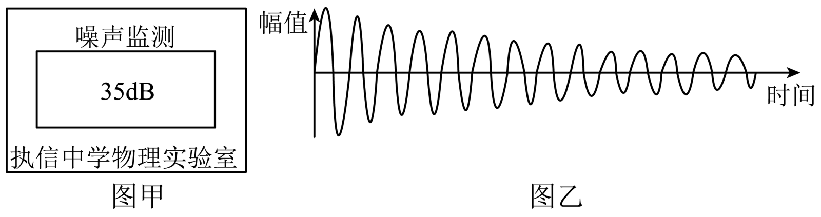 | C.图甲装置能在传播过程中减弱声音 | D.图乙波形中的“幅值”反映了声音的“响度” |