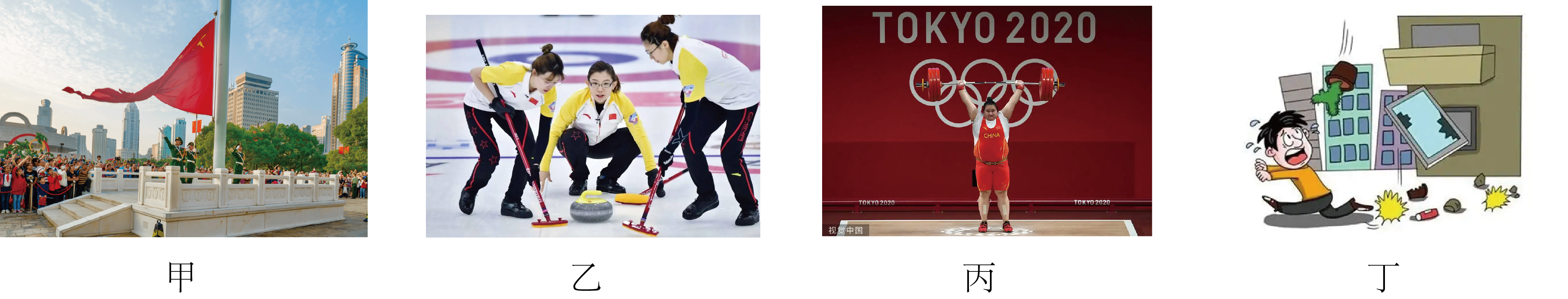 | A.甲图中国旗冉冉升起,相对于地面国旗是运动的 |
