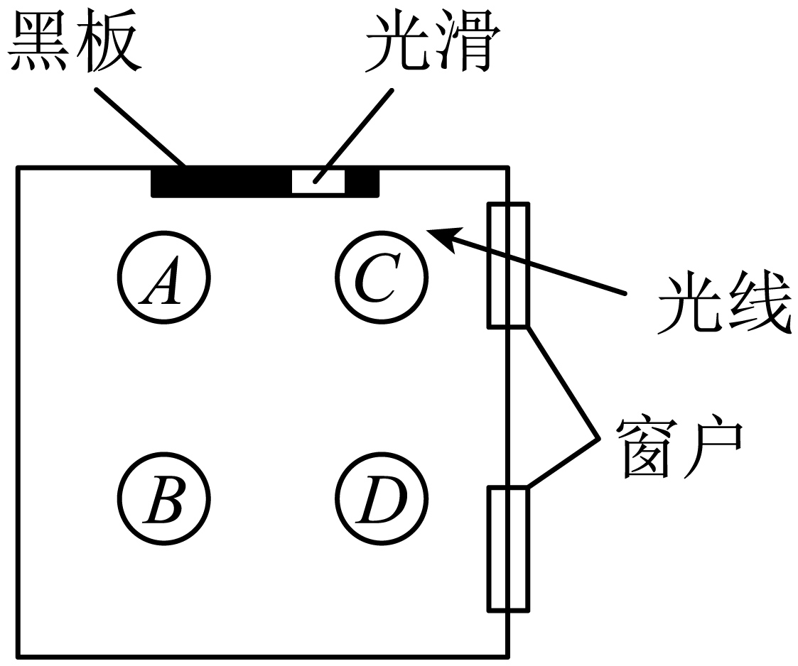 | B.最有可能因反光而看不清光滑处字的是位置A |
