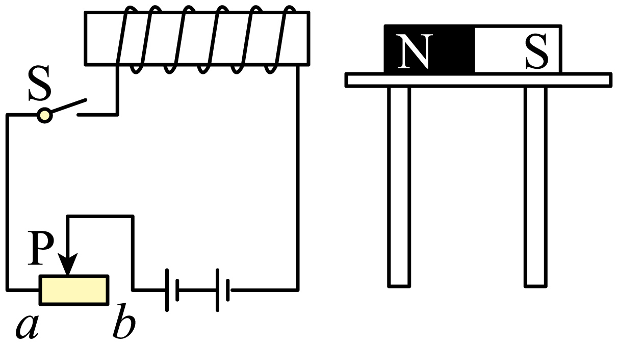 | C.闭合开关后,滑片P向a移动时电磁铁与条形磁铁间的作用力减小 |
