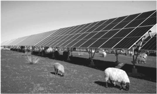 我国能源转型取得成效,光伏发电增长迅速。新疆尼勒克县发展光伏产业,实现了“板上发电、板下牧羊”。读新疆尼勒克县光伏工程景观图和我国近十年各类能源发电装机容量占比表,完成下面小题。
