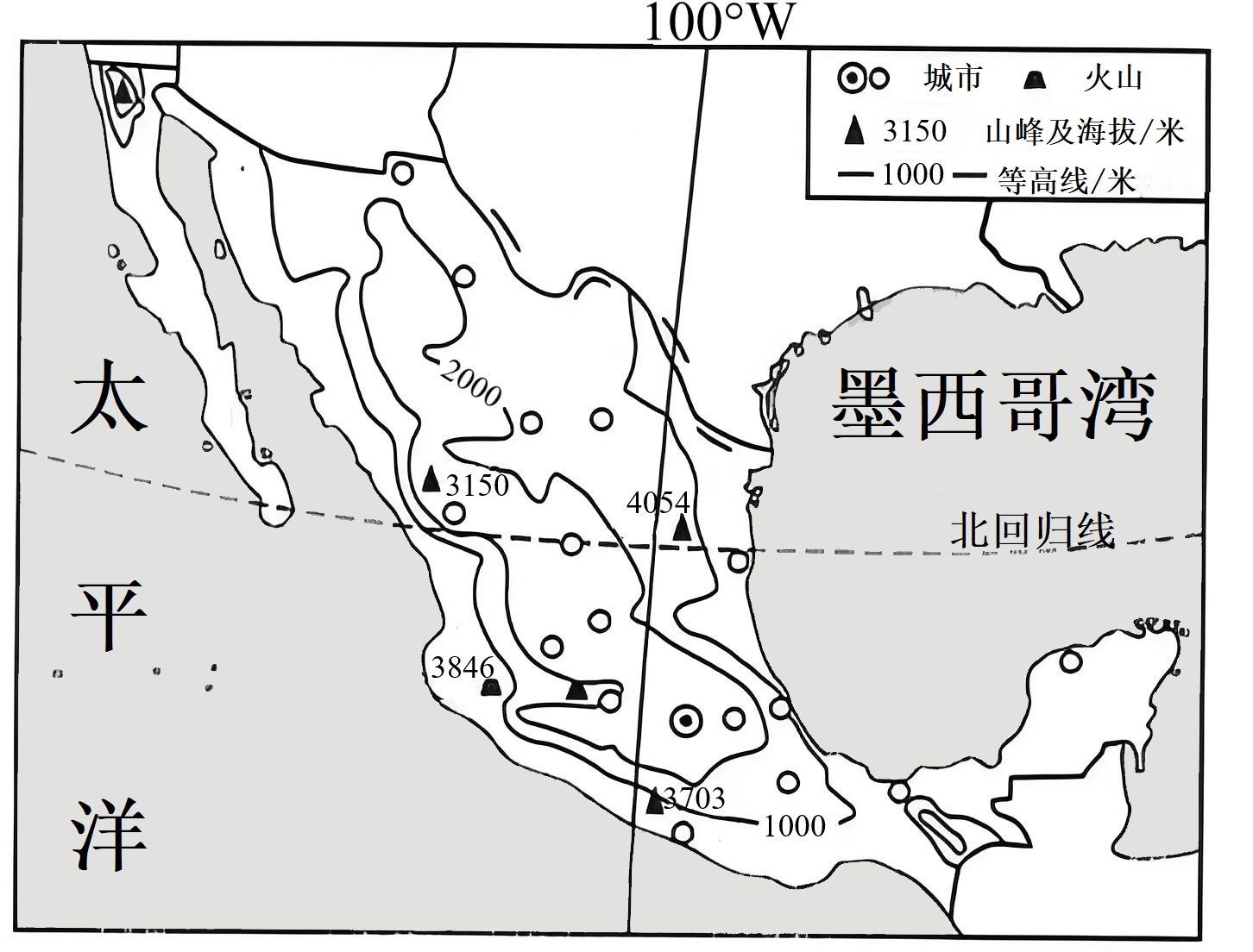墨西哥位于北美洲南部,是我国在拉丁美洲的第二大贸易伙伴。读图,完成下面小题。