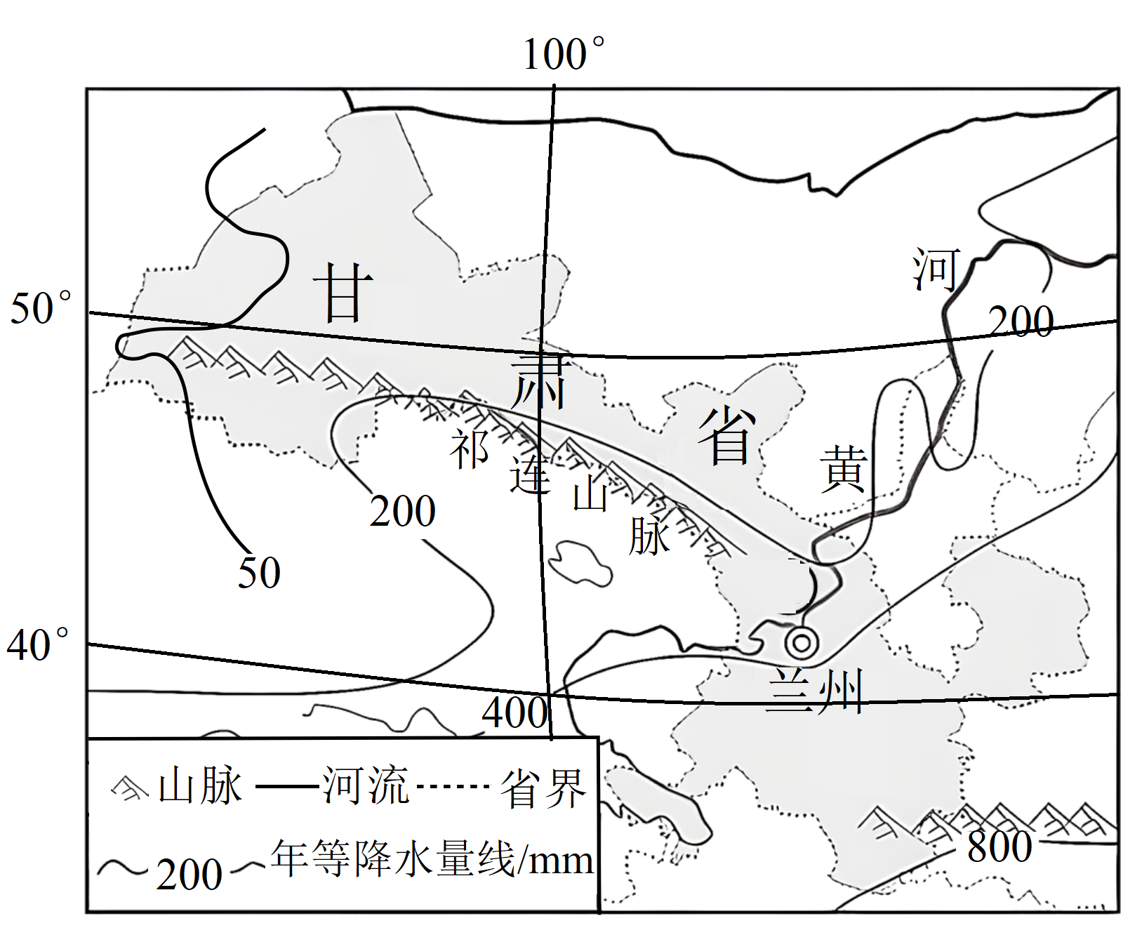 甘肃祁连山区的农民每年夏季种植胡萝卜、娃娃菜、荷兰豆等喜温凉的“高原夏菜”,这些“高原夏菜”除去不能食用部分,以“净菜”的形式大量运到2000千米以外的杭州、上海等地。读甘肃省年降水量分布图,完成下面小题。