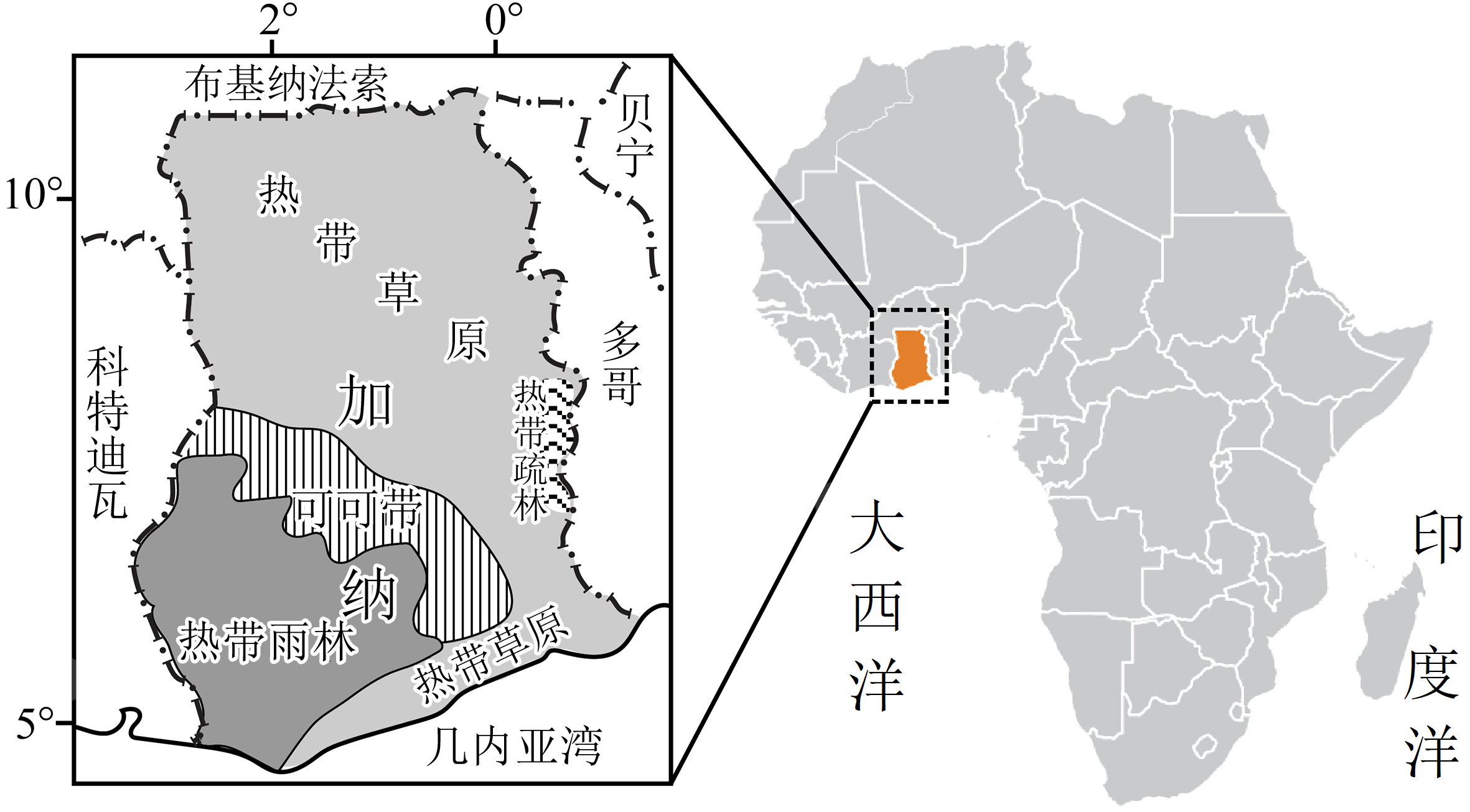 长期以来,非洲加纳近90%的外汇收入来自可可、黄金和木材三大传统出口产品。全世界每六块巧克力中,就有一块的原料来自加纳。加纳的进口产品包括化学制品、交通设备及机械等工业制成品。读加纳示意图,完成下面小题。