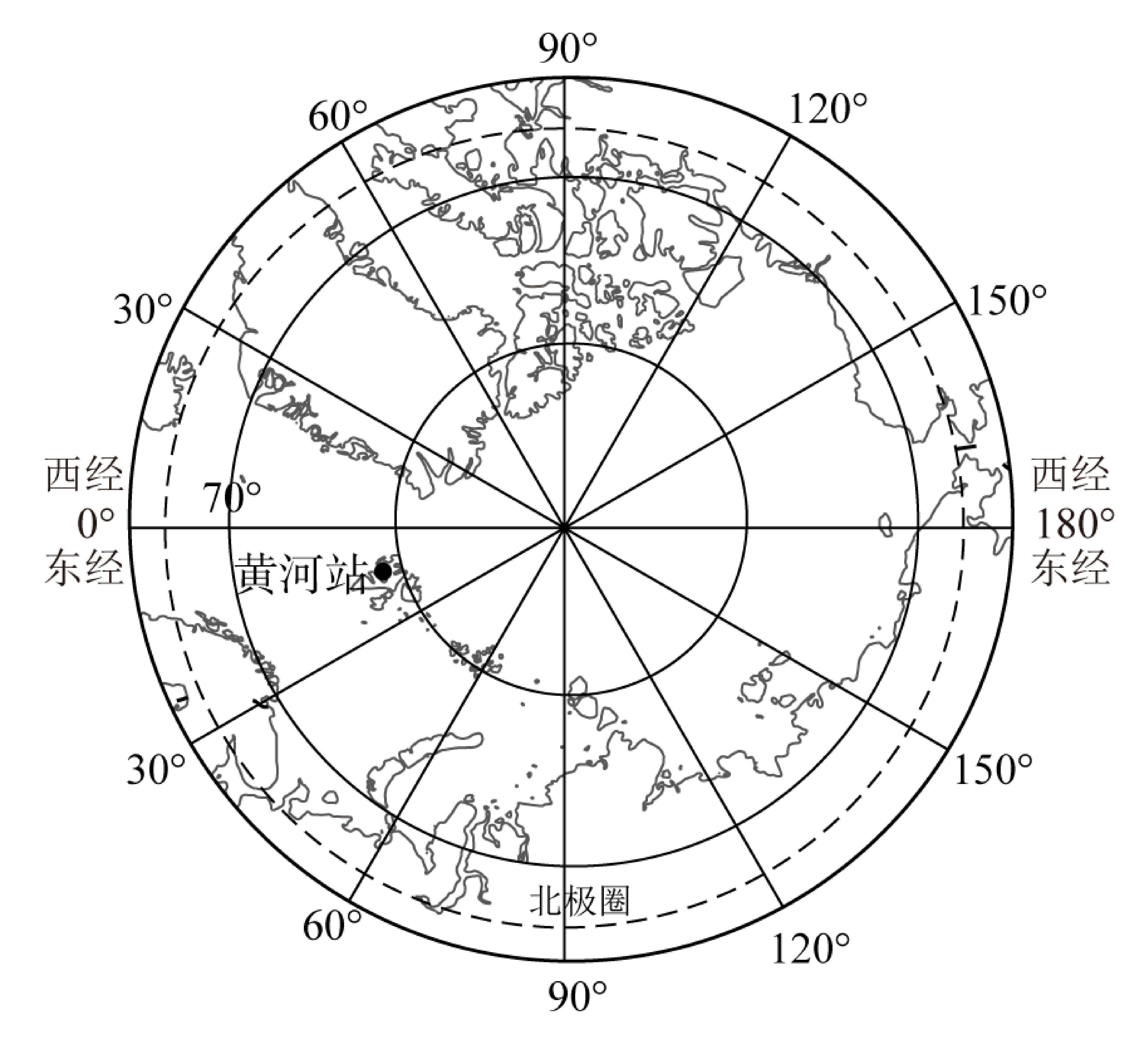 极地地区是全球气候变化的敏感区域,近年来呈现异常增温趋势。读北极地区轮廓图,完成下面小题。