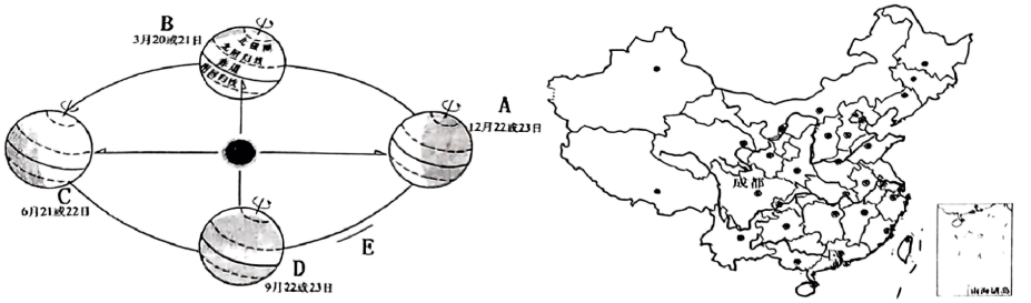 2025年世界运动会将于8月7日至8月17日在中国四川成都举行,这是中国大陆第一次举办世界运动会。读地球公转图和中国政区图,完成下面小题。