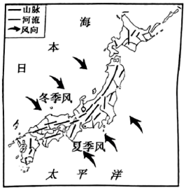 2025年1月,日本东北部沿海地区普降大雪,最大积雪厚度达4米。读日本概况图,完成下面小题。