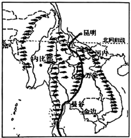 2023年4月13日中老铁路国际旅客列车正式运营,我国昆明和老挝万象之间往来可实现朝发夕至。读图中南半岛地区略图,完成下面小题。