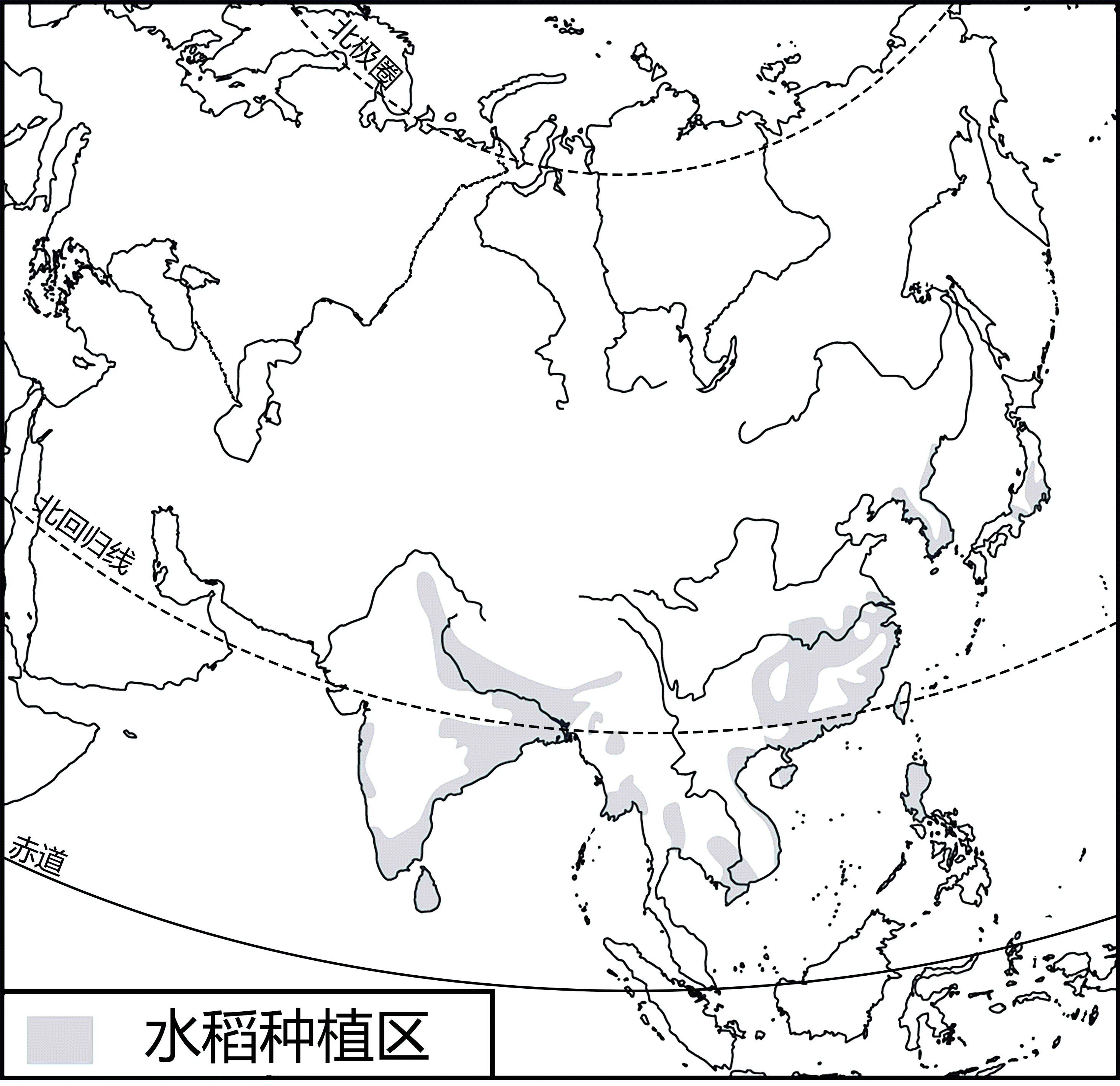 中国国家主席习近平在亚洲文明对话大会上,用河•禾•合来讲述亚洲文明。水稻是亚洲文明传播的重要载体之一。左图为亚洲水稻主要种植区分布图,右图为东盟十国位置示意图。读图完成下面小题。