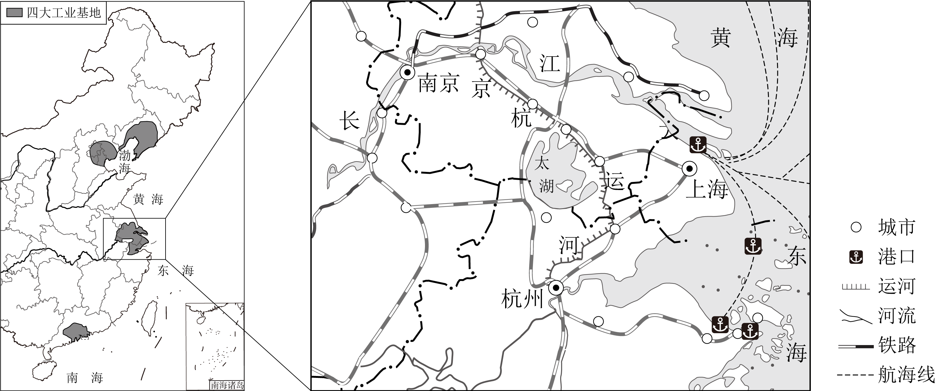 | C.地处江海交汇之地,港口众多 | D.依托京杭运河,联系粤港澳地区 |